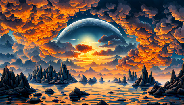 #fire #fantasy #fantasyart #landscape #landscapeart #moon #mountains #night #nighttime #purplehair #starrynight #stars #moonart #artisticlandscape #artworkdigital