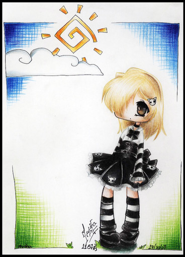 (The background is digital coloring, but since the main drawing is traditional, I chose traditional -> no, mixed media is for other stuff : O...)Media: prismacolor pencils.