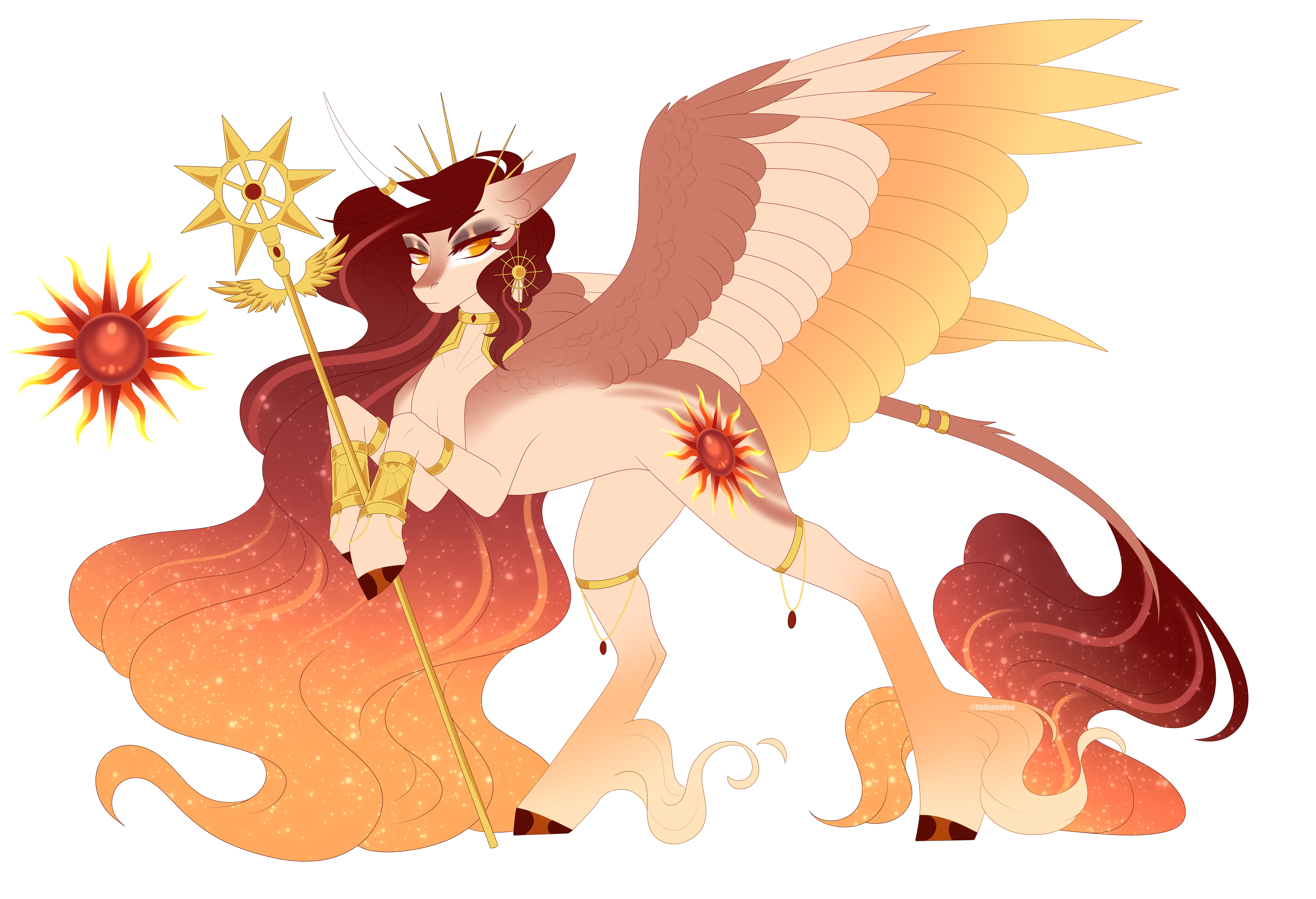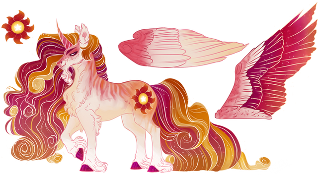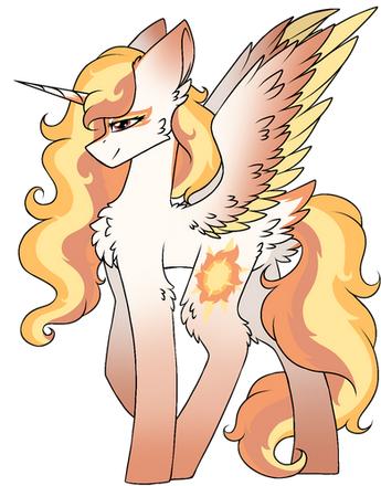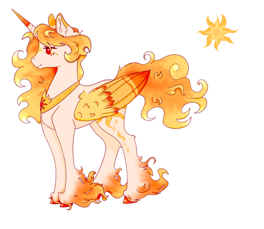 Oh, I love this design for Celestia! Very strong and bold color scheme. You can really feel her connection to the sun here. Celestia in the show never really looked like she had a connection to the sun, other than her cutie mark, did she? Maybe taking on Luna's duties for so long affected her appearance, making her more in-between or something (I mean, the way her mane looks like an aurora makes me think of night more than day, right?). Anyway, this is a great headcanon design for Celestia!