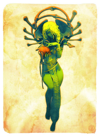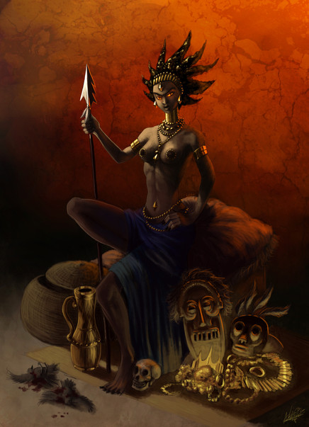 This is also amazing. Love the detail and how she's standing - so proper, yet murderously. With the arms it reminds me of that god... can't put my finger on the name, however.