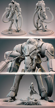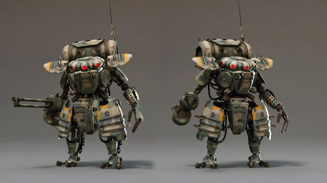 I just found you through the Concept Robots site. Your work is inspiring and well balanced between detail and flat space. Good for models. I would be happy to see 3d prints of creations like this one for table top games or painting for fun.