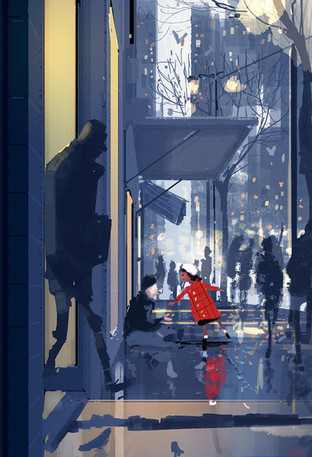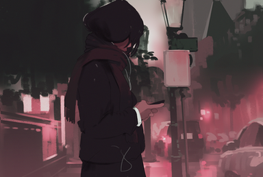 I love the impression the bright red of the scarf's give off implying that they run into each other and be something important to the other one. ^_^ I really like the way that you drew this, what inspired you?