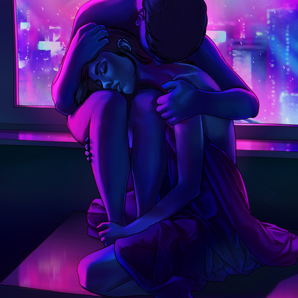 A very sweet and loving moment. The colourscheme is beautiful!