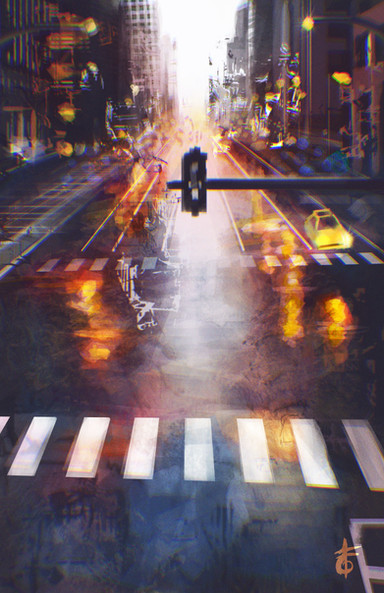 I really love the addition of white flakes, making it very picturesque, as well as the abstraction of the cars' red lights. Very atmospheric!