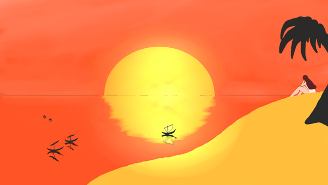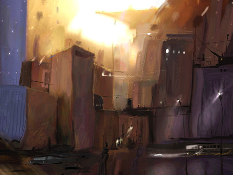 Congratulations on 3000 sketches; that is a lot! I love all the gold in this picture and the hazy land/cityscape.