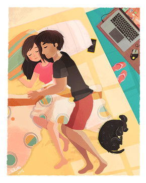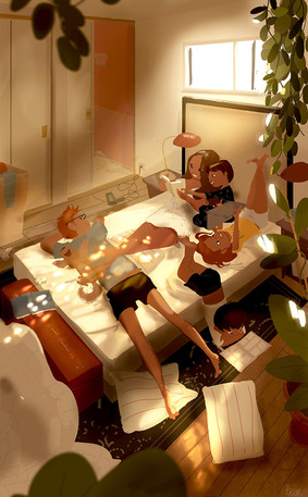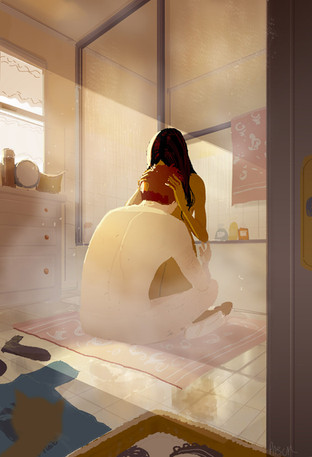 This illustration hits right at home with me! Sharing this piece with my wife. Jhouchin2 mentioned the blinds adding to the atmosphere and I 100% agree, it's just a great composition overall. The colors you chose are so inviting and even the cat is super welcome to come cool off lol