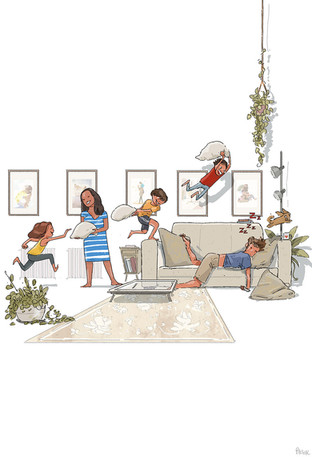 There's no light saber in the universe that will save dad from this onslaught! Mom has escaped to the garden...