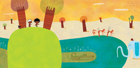 I love this. The shadows make it look like it could be a play on a pop-up book or a cave drawing. Very interesting composition