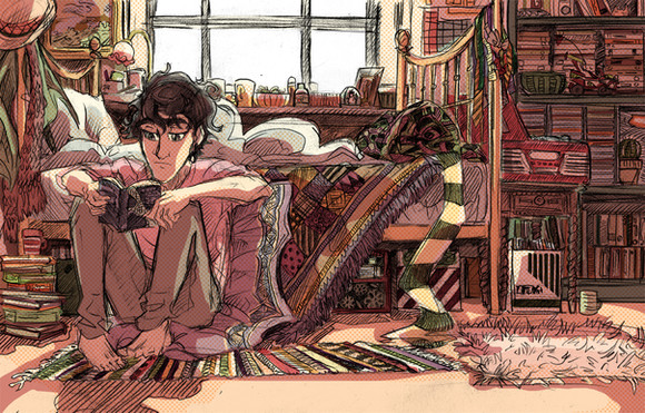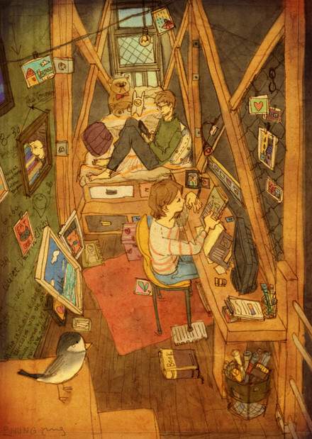 The perspective of this image is so cool--I love how it seems as if the viewer is looking down onto the scene. And the lighting is soft and beautiful. Reminds me of "To a Poet" by First Aid Kit: [link]