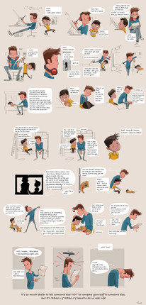 Slumps and stuff.This one started really organically.I was feeling stuck with my work so I doodled the guy walking on the tree trunk, then did the rest of the scene around then drew the rest of the story. That was fun!