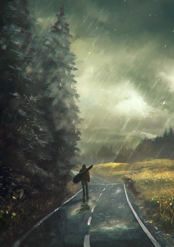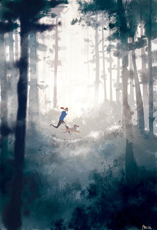 This piece is amazing, at one glance I was submerged, in a sea of leafy green, shards of light, rich earthy rain smell with "Somewhere only we know" playing in the background with forest sounds and barking mixed in underneath.