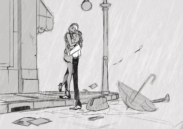 Lovely--I really like how you manage to convey a sense of warmth even though the scene is rainy and has lots of black, white, and gray. Β It's sweet that your wife and family inspire your illustrations so frequently!