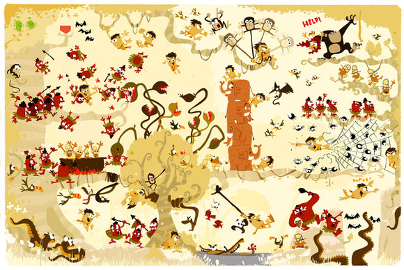 i love this! the giraffe's neck is so great, and i love the monkeys' expressions
