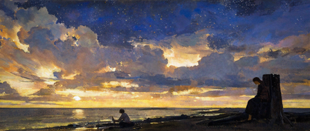 gorgeous, I love the colors and use of texture. The railing is a nice touch and it really feels like I can hear the water when I look at this!