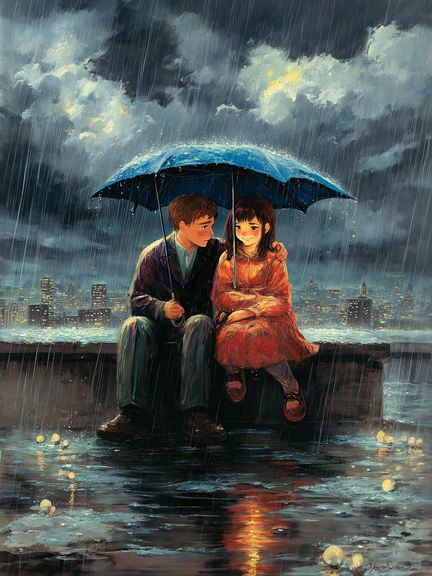 I love it! The way you illustrate rain is so beautiful and fluid. Reminds me of Train's cover of "Umbrella" by Rihanna: [link]