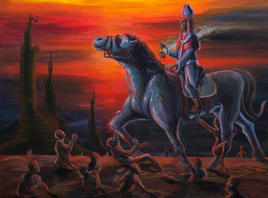 Well, for one, I'm not offended in any way. Matter of fact, you bring up an extremely valuable point. If you've ever looked at the numerals on his hat, they lead up to the devil's number (666) in a vast multitude of languages. An international icon of sin. Kind of scary when you think about it, that so many people would side by a false prophet, and would kill in "His" name. Not saying I'm not a strong believer in God, but this is God's work. I could rant on about it (lol) but I'm trying to keep my comment kind of short. Beautiful work, and I'd be interested in talking about this sort of the thing in the future. Best of luck to you, I'd love to see more!