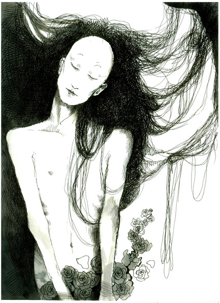 Great job with the different lines and hatching, awesome addition of the roses and the mask