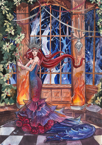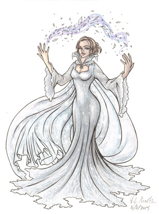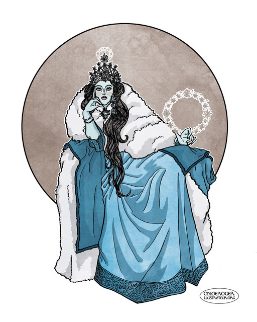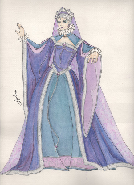 This is a gorgeous design! It reminds me of the Snow Queen- I adore that crown, it's wonderfully gothic and that cloak is enchanting! I love the way you've incorporated the snowflakes into the entire design!