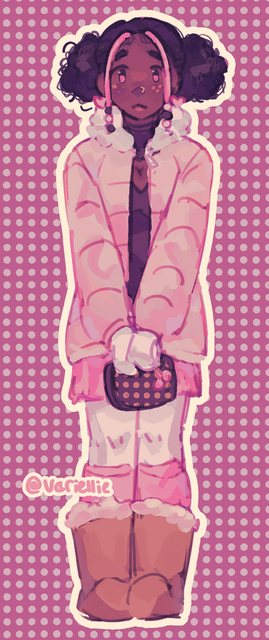 she looks like she's standing in the snow, but the snow is shaped like hearts rather than snowflakes. perfection!