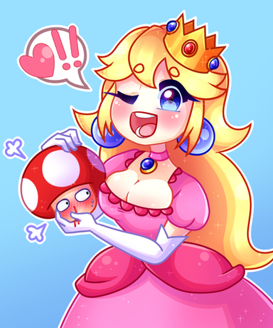 One of the best things I love about this art is how you drew Peach with brown eyes! I love the dark eyes and blonde combo. βͺ( Β΄β½ο½)