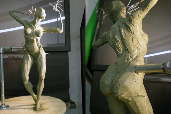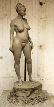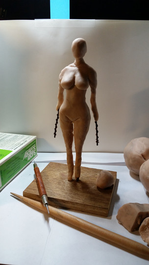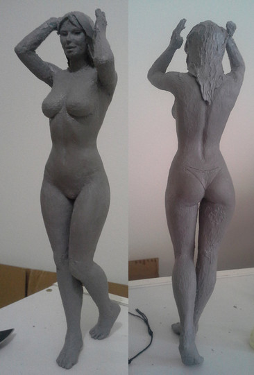 Failed experiment.I tried to show a slim and a fatter woman in one sculpture, but it turned out to look repulsive, a halfbaked anatomy exercise and a bit like a bionic woman.