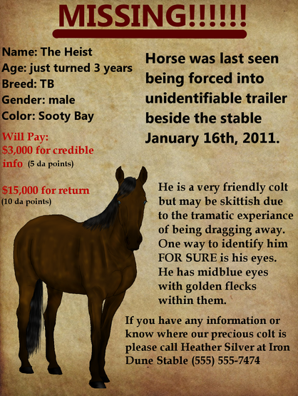 Background: Heather, the owner of Iron Dune Stables, had read an add for some Gypsy Vanner horses for sale. The stable already had Akhal Tekes in training to race, a Percheron Mare for carriage, but now she was looking for the perfect dressage horse. She'd done her homework on the breed and couldn't help but day dream of the majestic steeds.