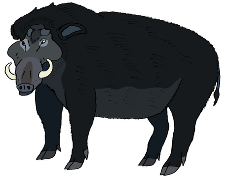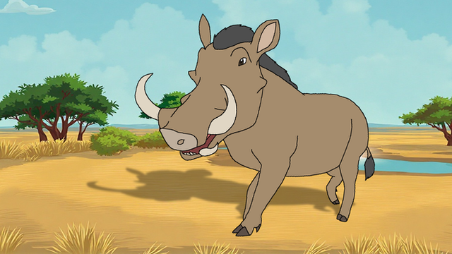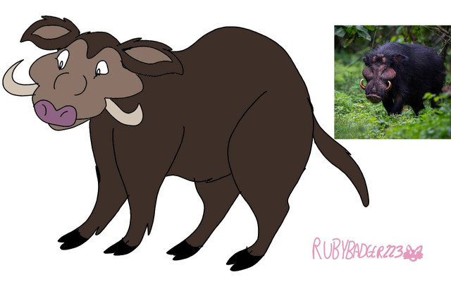 Description: If you are a fan of Pumbaa from The Lion King, Warthog from TingaTinga Tales, and the warthog from Bedknobs and Broomsticks, then you know Pumbaa was a warthog. They have the longest legs of all pigs, so that means that they are the only pigs that can kneel within their knees from their hands, like that of bigger ungulates, like cows and horses. Although they are native to Africa, warthogs lived in the deserts and savannas to survive sometimes without water to drink, and they have predators, like humans as poachers and hunters, lions, spotted hyenas, crocodiles, leopards, cheetahs, wild dogs, and birds-of-prey that can prey upon the warthogs. Their tusks from both sexes are much like that of ivory, which poachers hunted them for their ivory. Ivory might be an illegal resource from the tusks of pigs and elephants. There's the differences, between Common and Ingitiszoan warthogs. In common warthogs, that they have shorter legs, and less horned than the Ingitiszoan counterpart. While the Ingitiszoan warthog, had a lot of horns, including the Ankylosaurus-like horns under and over their eyes, triangular horns on their snouts and chin, and longest horns on top of their heads between their ears is similar to a gazelle, and their bodies are more mule-like.