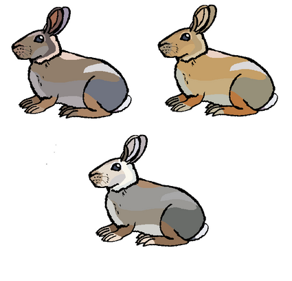 Description: A familiar rabbit that lived in eastern North America, the cottontail rabbit had long ears, large hind legs and feet, short bobbed and fluffy tail, which they have characteristics of rabbits and jackrabbits(or hares). The cottontails' arms are shorter than their legs, and the soles of their feet are covered in fur. When it comes from the name of the cotton-tail, which this rabbit hold its tail up for a retreat, also the underside of the tail is white. Unlike all rabbits, the cottontail doesn't develop a winter coat. They're territorial, When chased, it runs in a zigzag pattern, running up to 18 mph (29 km/h). The cottontail prefers an area where it can hide quickly but be out in the open. Forests, swamps, thickets, bushes, or open areas where shelter is close by are optimal habitation sites for this species. Cottontails do not dig burrows, but rather rest in a form, a shallow, scratched-out depression in a clump of grass or under brush. Unsure if the cottontails' social unit was poorly known? The Earth predators of the cottontails are cats, dogs, red and grey foxes, coyotes, bobcats, weasels, raccoons, owls, hawks, ravens, and snakes.
