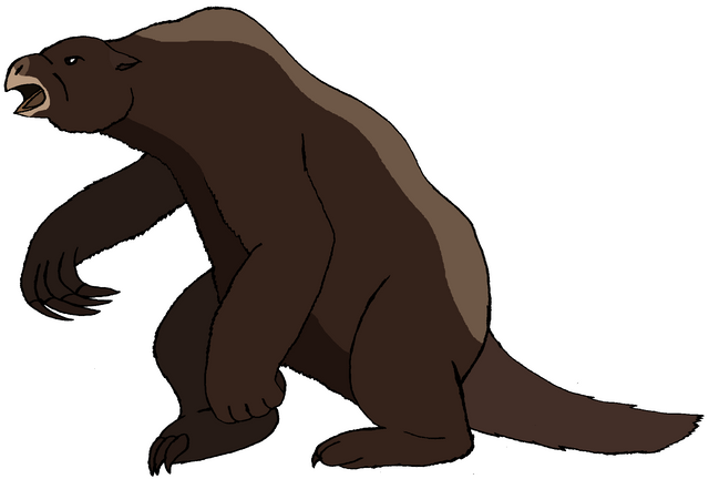 Description: The name "Megatherium," means, "Great Beast." As the "Great Beast," means that the Megathere is the largest of, not only sloths, but the largest of all xenarthrans. It is roughly the size of the bush loxodont, which this sloth weighs 4 tons, and measured 20 feet long. These giants are complete vegetarians, and they can use their tongues to grab leaves from trees. Also they can spend their times resting in order to aid digestion. They can use claws to tear and shred those plants to give those plants to their mouths. Also they can use them for self-defense and combat. Like giant anteaters, the Megathere have massive claws on their hands, capable of killing a predator, even it can kill a predator that is the same height as one standing on 2 legs(with one tail). Like Therizinosaurus, which it is Megatherium's dinosaur counterpart, the Megathere is too slow to hunt prey, however although they are vegetarians, they are capable of scavenging the dead, taking over the kills from predators. Unlike sloths, but like the Ceratothere(a.k.a. the white rhinoceros) which they are the biggest and the most social of rhinos, the Megathere is not only the biggest, but the most social of all sloths, which they lived mostly in groups, but they'll keep in touch with each other as friends, so they can live alone in caves. Giant sloths on Earth, that they lived in South America, during from early Pliocene to the Early Holocene, 5 million-10 thousand years ago.