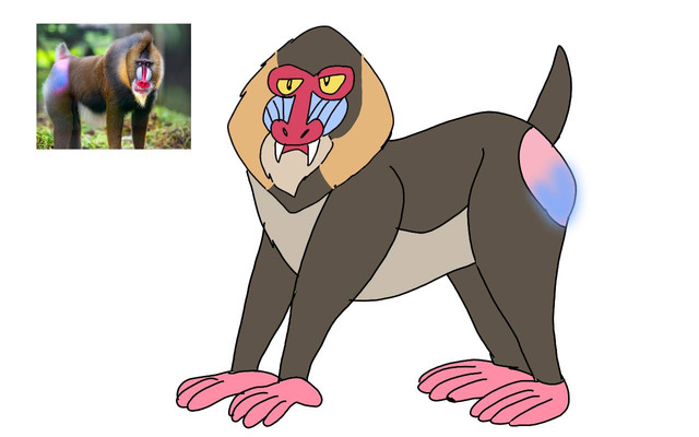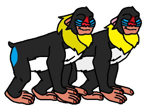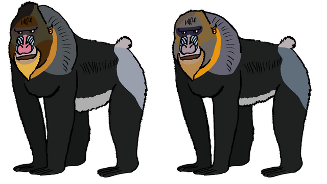 Description: Not only the most brightly colored mammal in the world, but the Mandrill is one of the largest of all monkeys(NOT apes). Males are brightly colored than females, because, A: they are dominant in their harem pack, which the important part of the pack, was a male alpha. B: He declares his identity to other animals, as well as announcing his sex and virility to females. Mandrills are mostly terrestrial, but they are more arboreal than other baboons, and they can feed as high as the canopy. Males-only bachelor groups are highly rare, but this was not known to exist. The mandrill's predators are eagles, vipers, pythons, and leopards. Although mandrills looked a lot like baboons, but the mandrills are more closely related to white-eyelid mangabeys, than them.