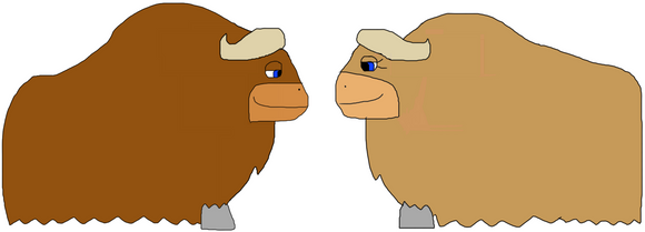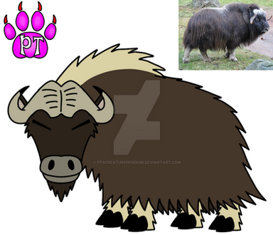 Description: The biggest members of the sheep family, the muskox is an arctic mammal, noted for its thick and shaggy fur-coat, and for a strong and smelly stench emitted during the rutting season by the bullrams. Male muskoxen are called "Bullrams," "bulls," or "rams." Females are called "Cowewes," "Cows," or "Ewes." And the baby muskoxen are called "Calflambs," "Calves," or "Lambs." Although this big sheep strongly resembled the bison by its appearance, with horns similar to the Cape buffalo, it had a big body, short and stout legs, short tail, short neck, and slight hump on the shoulders, the muskox is more closely related to sheep and goats, than to cattle(such ones as the bison, water buffalo, Cape buffalo, and aurochs.). The musky odor was used to attracted the cowewes during the mating season. We humans used the muskoxen, for meat, wool, and milk, as semi-pets. The wool and quivit was higher in prizes for its softness, length, and insulation value. Prices of the muskox yarn can range from $40 to $80 per ounce. Most muskoxen lived in big herds, which both have separate age-based hierarchies, with mature oxen was being dominant over the calflambs. Like the big ceratopsians, like Triceratops, the muskoxen had excellent defense, that healthy bullrams and healthy cowewes protect their young. They also protect the sick, weak, and old members of the herd, so the healthy adults circle around the members of the herd who are pregnant, sick, weak, old, and young members of the herd, from the predators. The predators of the muskoxen are wolves, grizzly and polar bears. The dominant bullrams treat the subordinated bullrams, like that of cowewes. These bullrams are aggressive than the cowewes, due to their dominant behavior. Pregnant cowewes are much aggressive.