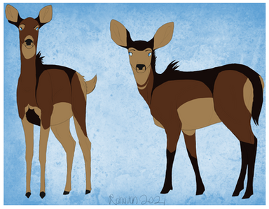 Description: Along with the White-Tailed Deer, the Roe Deer is the best known Eurasian deer, along within Moose, thanks to Felix Salton's story, Bambi. This deer got the white rump, and for the differences, the white rump patch is heart-shaped in females, and kidney-shaped in males. Baby roe deer are called "kids," which the other baby deer are called "fawns," while the big deer babies are called ,"calves." Roe Deer are native in Europe and North Asia.
