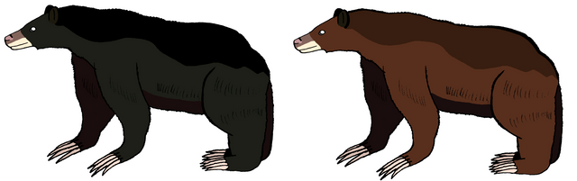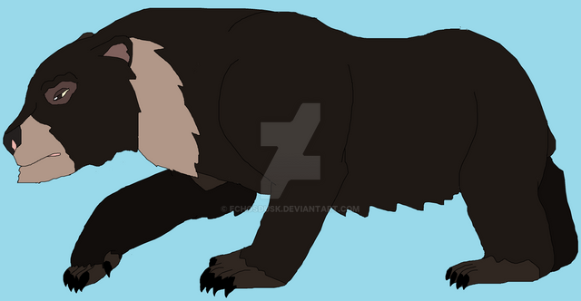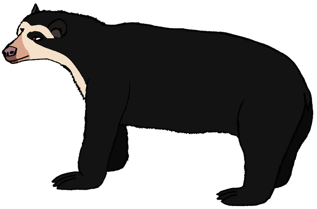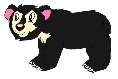 Description: One of the world's smallest species of bear, is the sun bear. They lived in the jungles of Southeast Asia, including the islands of Indonesia. These bears can rest in the nests in the trees, made out of leaves, or in large hollow logs, but they also rest in standing trees with cavities, in cavities underneath fallen logs or tree roots, and in tree branches high above the ground. When surprised, they said that sun bears are even though they are small, but they are fiercer than tigers. In the wild, except for a bond between mother and her pups, they are solitary, but in captivity, the sun bears are very social than their wild counterparts. They had long sticky tongues, like aarwolves, anteaters, aardvarks, and even sloth bears, to eat a lot of termites. Also they have long claws for defense and fighting. Like black, moon, sloth, spectacled bears, and pandas, the sun bears are excellent climbers.