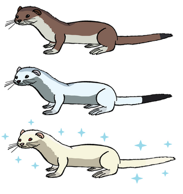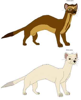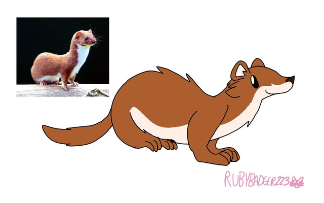 Description: The weasel is the world's smallest carnivoran, the smallest caniform, and the smallest of all mustelids, but had the most widest distribution for all carnivorans, along with the stoat and the red fox. They can be easily recognize that they have long bodies, short mouse-like faces with sharp teeth, short legs, and a short bushy tail, and varied up fur. And by varied up fur, that the weasels' fur in summertime are reddish-brown with whitish undersides, and the winter fur of the weasels' are white with blackish tail tip. In European folklores and mythologies, that some weasels are good omens, but some others are being evil and bad. But they are like that of mongooses who killed snakes, which according to Pliny the Elder, that the weasel is the only animal that can kill a basilisk/cockatrice. Weasels are native to all over Europe, North Asia, North America, and even north Africa, but they are introduced to Australia, New Zealand, Argentina, Chile, Canary Islands, and other places where they are introduced. Their predators are included larger mustelids, foxes, eagles, owls, buzzards, snakes, and even stoats. The least weasel has a typical mustelid territorial pattern, consisting of exclusive male ranges encompassing multiple female ranges. The population density of each territory depends greatly on food supply and reproductive success, thus the social structure and population density of any given territory is unstable and flexible. Due to its small size and fierce nature, the least weasel plays an important part in the mythology and legend of various cultures. We do see weasels in movies(e.g. Wind and the Willows, Animals of Farthing Wood, etc.), TV Series(Animals of Farthing Wood, Animal Land, Looney Tunes, etc.), books, games, etc.