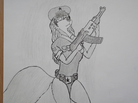 Some of you older watchers are probably familiar with Lizz. A long time ago I sketched this, hoping to colour it eventually. That was some two or three years ago, and now at last I picked it up and put it through photoshop.So there you go, enjoy Lizz soaking up some sunbeams on top of her Sukhoi's wing.