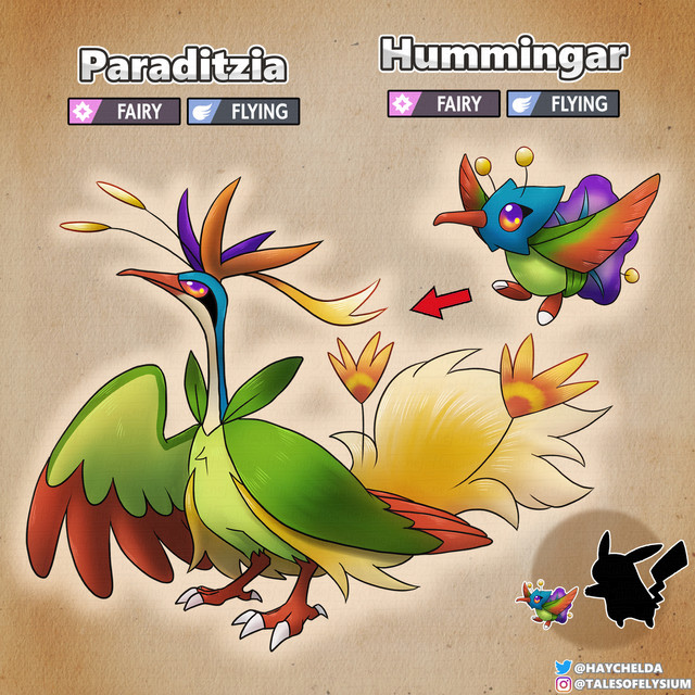 This agile Pokémon can be found around the high peaks throughout the region and free falling just for the fun of it. The aroma their wings create is highly sought after by perfume makers, this Pokémon spends most of its days in the sky rarely touching solid ground for days at a time.