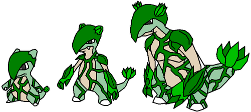 Cool! The Grass type could be cactus-like, or maybe one of those thin, tall trees with the funny leaves? *forgot what those were called... maybe it was the Akai or Acai?)