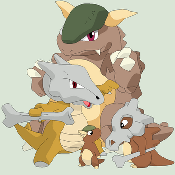 I though up a little idea with my friend the other day...what if a cubone was born and its marowak mother didnt die?? I wouldn't have its skullhelmet thing and certainly not it's trademark boneclub!! So I started thinking what if a family in the Hexsa Region (upper area of johto over the mountains and across over partially into kanto) had a family pet Marowak who had just laid and egg mysteriously...the Marowak doesn't die after laying her egg!! Resulting in a Cubone without his skullhelmet...but it doesn't end there this Cubone is special because it can become 3 different types of Pokemon depending on the hold item it is given...(some moves can only be learnt when a certain elemental stone is given to the Cubone when leveling) So basically this regions starter is a Cubone...NO NAMES AS OF YET BUT I WOULD LOVE PEOPLE TO HELP ME OUT