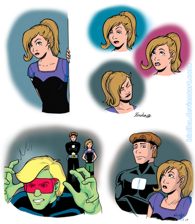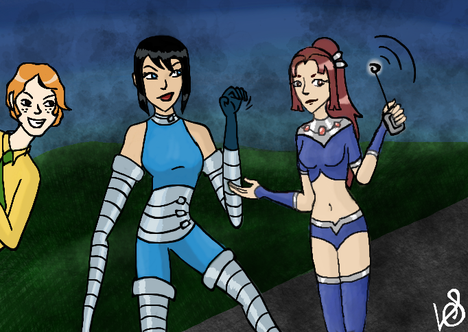 So the TV show Legion of Superheroes inspired me to make up my own superheroine (Wirelass) who ended up liking B-5 (yeah BIG suprise!) One day while surfing youtube, I came across Galaxy Girl and thought it would be fun to make this drawing!Nothing against Galaxy Girl! Its all in good fun!