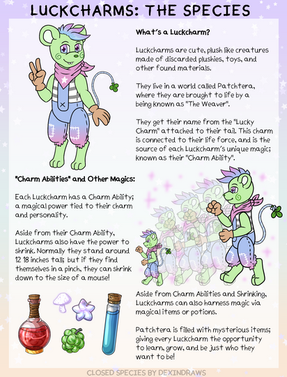 Luckcharms are a closed species created and owned by DexinDraws for more information please check out our species profile Patchtera or join our Discord Server