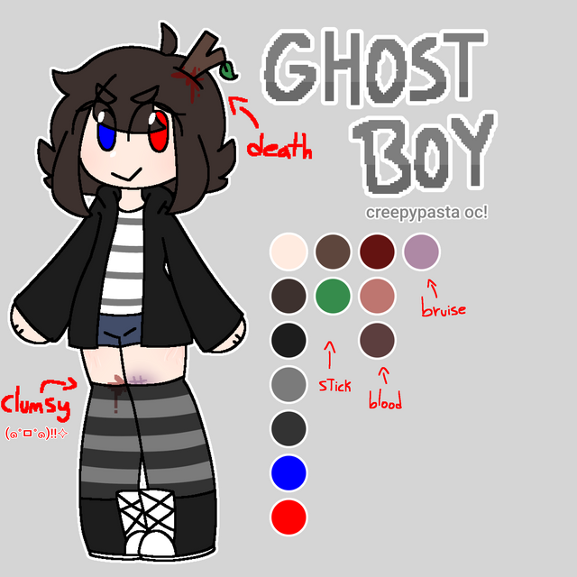 I've been in such a mood to do stuff with my Creepypasta characters lately, it's been insane how much time I've spent thinking about them all. So of course I have to do more references for them. Hence why you currently see this lovely image of my frozen child in front of you. Much like Looker's reference, really not much has changed about his design at all since he was originally designed. I don't think anything did, actually, except the exact way that I draw like, his hair and stuff. But oh well. Here's Chill's reference. There's no shots of like, any scars or anything on Chill's body because his clothes are all frozen to him and can't actually be removed!