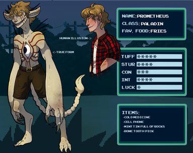 History: Messiah was raised by a cult in southern Italy. For the first 20 years of his life, Messiah was kept confined underground in a single room by that cult. It was there he spent all of his time, usually reading the thousands of books he was provided with and talking with Vasir. Eventually, Vasir decided he didn’t want to be cooped up underground and forcefully transformed, using their shared body to kill and eat the entire cult. After that, Vasir gave their body back to Messiah and helped Messiah find his way to North America. Messiah now is simply wandering across the country, focused on surviving, and feeding Vasir.