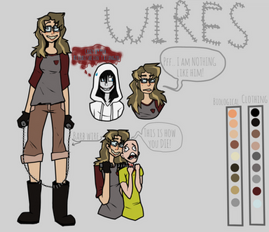 Wire also carries a little black notebook around with him. This notebook is filled with an enormous amount of any and all information on all Sulkerman proxies. He gathered it all himself, so it is by no means complete or necessarily completely accurate. Most of the information he has is based off of observing or interacting with other proxies, or digging things up through various database hacking escapades. However all this information is heavily coded, so only he can read it. Wire keeps this information for personal reasons, and will only ever give said information out to Sulkerman. However, Wire isn't against redacting some information about Sulkerman proxies if he's asked to, and they have a good reason for him to remove that information. Wire has been known to attack anyone who tries to take the notebook away from him.