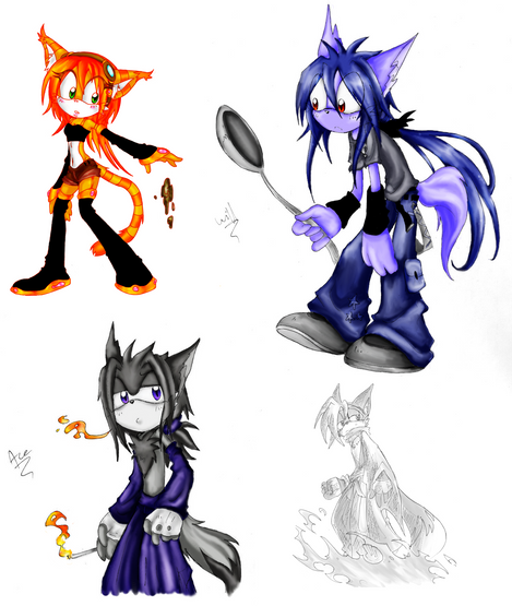 Info: Ceux's body was distorted when it was made, for some odd reason, his body was born without a soul. But what isn't known, is that the gem on Deni's neck IS Ceux's soul crystallized. Same with Deni, black marke on feet and hands are fur patterns NOT gloves or shoes
