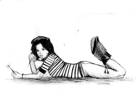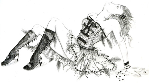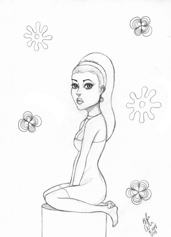 Pencil and Brush Ink. This was composed from a number of references.Hands: