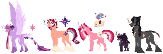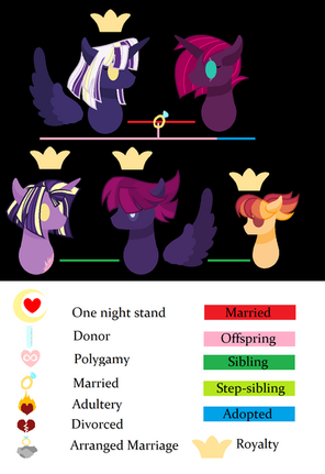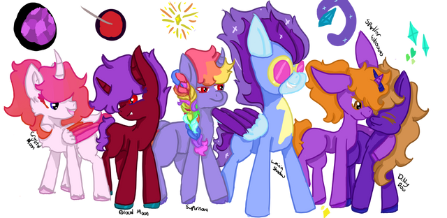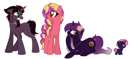 Upon the conception of Eclipse, the demonic darkness inside Twilight, having grown restless from being out of power for ages, latched itself onto the unborn foal. Her birth was both wonderful and terrifying- to rid their baby of the darkness, they cast a protection spell that, while expelling the demonic presence entirely, ended up permanently blinding their sweet baby. Despite this, along with her somewhat rare and unnerving batlike wings resulting from the merging of the two within the womb, Eclipse has made quite a life for herself, surpassing the achievements of both her mothers in intelligence and power. She spends her days finding safer, less damaging cures for those possessed by dark entities.