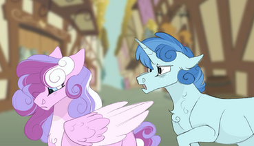On the far right is Jonagold Apple, son of Rarity and Applejack. On the left is one of my Shiningdance kids, Smitten Lust. These two HATE one another. They compete often against one another trying to prove that they are the best, usually causing quite a ruckus.
