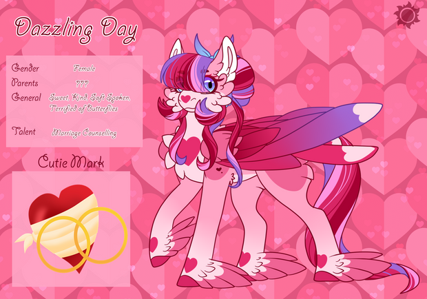 Valentine is stunningly gorgeous and she knows it. She goes out of her way to buy lavish jewelry and enjoys spending her time at the most expensive stores in Canterlot. Her favorite pastimes include dazzling others (many a stallion or mare fawn foolishly over her, sending her love letters in an attempt to woo her and following her around in packs to dote on her every need) and, while she isn't tending to royal duties, she takes up modeling jobs under Photo Finish. While some jealous ponies perceive her as uppity and shallow, her friends know that she is able to look past her material possessions and find it in her heart to help others when they need it.