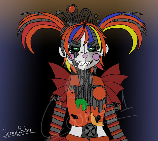 I forgot about this to be honest- I made it a while ago, I lost motivation when I started to color lol.But I'm still really proud of it! It took around 5 hours I think? And it's the first time I've drawn scrap baby! I might redo it sometime.