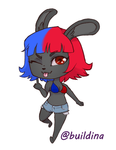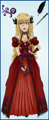 Gimxac belongs to qnerdi , I imagine her as a sort of vicious prankster when she's not being an airhead. She may invite you to a tea party, but think carefully if you've done anything she'd be mad about lately, or there will be belladonna in your cup and nightmares in your future. She might dye your hair blue, or leave your body to be eaten alive by prowling beasts.